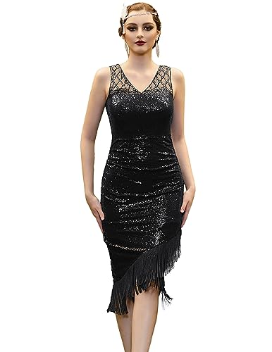 BABEYOND Womens 1920s Flapper Dress Flapper Sequins Fringe Dress (Black, M)