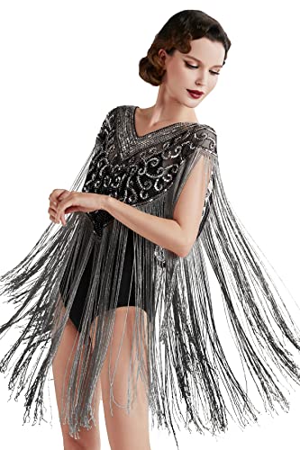 BABEYOND 1920s Shawl Wraps Long Fringed Evening Cape Sequin Beaded Party Shawl