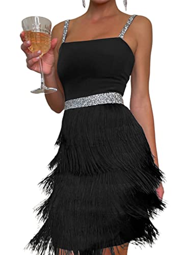 PrettyGuide Flapper 20s Sequin Dress for Women Vintage Fringe Cocktail Dress Black Party Dance Dress XL