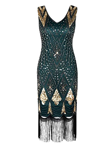 PrettyGuide Women 1920s Dress Gatsby Cocktail Sequin Art Deco Flapper Dress L Gold Malachite Green