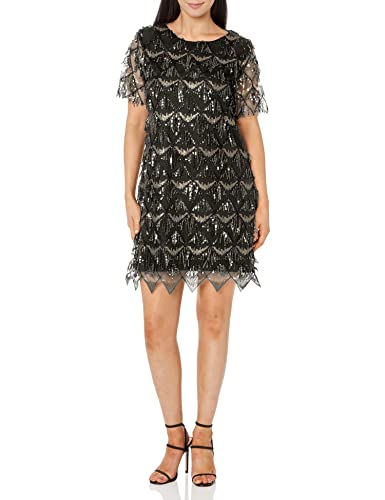 VVMCURVE Women’s Sequin Fringe 1920 Short Prom Dress Sequins Art Deco Cocktail Gatsby Party Dress with Short Sleeve (Black, s)