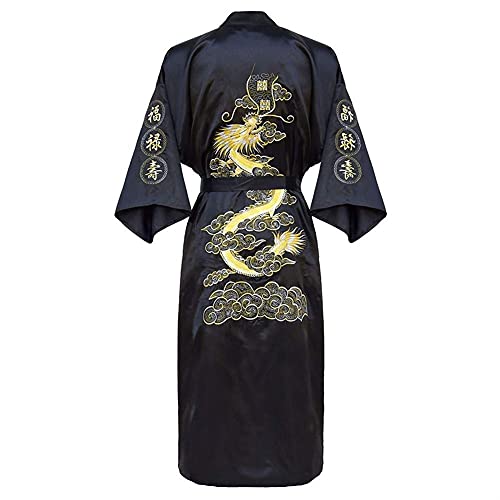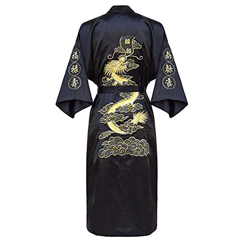 Women’s Satin Kimono Robe Long Sleepwear,Unisex Satin Robe Relaxation Bathrobe Dragon Embroidered Night Gown WAITAO (Color : Black, Size : Medium)