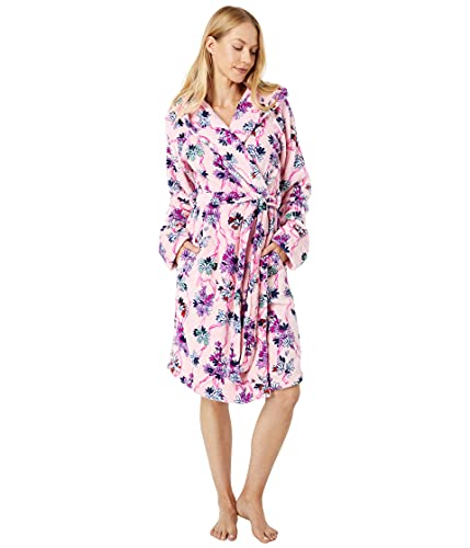 Vera Bradley Women’s Plush Fleece Robe (Extended Size Range), Hope Blooms Light Pink, Large – Extra Large