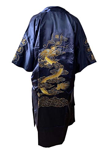Shanghai Story Men’s Robe Dragon Pattern Bathrobe with Waistband 3XL Navy