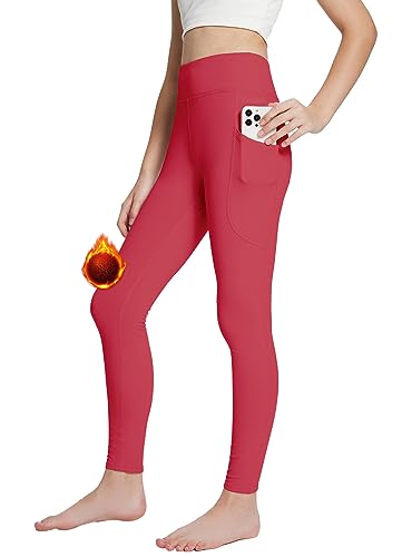 BALEAF Youth Girls Fleece Lined Leggings Winter Warm High Waisted Kids Athletic Pants Hiking Running Yoga Red L