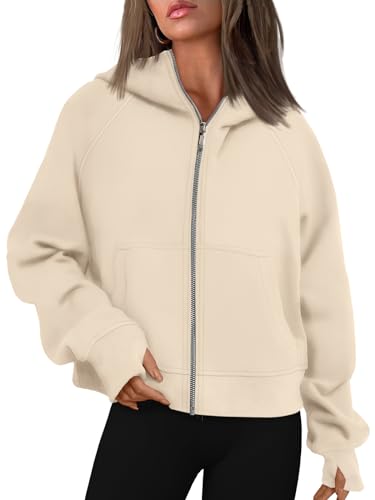 AUTOMET Womens 2023 Fashion Fall Outfits Winter Clothes Zip Up Sweaters Cropped Sweatshirts Teen Girls Y2k Hoodies Cute Jackets Long Sleeve Shirts Apricot