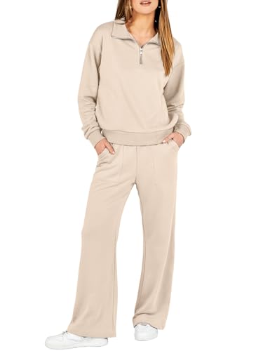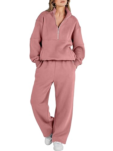 ANRABESS Womens Oversized Half Zip Pullover Long Sleeve Sweatshirt Jogger Pants Lounge Sets Teen Girls 2 Piece Outfits Sweatsuit with Pockets Fall Trendy Clothes A1215yufen-S