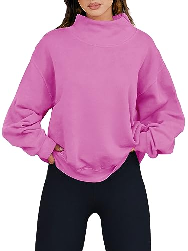 ANRABESS Fall Outfits for Women Oversized Sweatshirt Fall Fashion 2023 Crew Neck Drop Shoulder Collar Solid Long Sleeve Tops Fleece Hoodies Pullover Sweaters Casual Teen Girls Clothes 1085fenhong-S