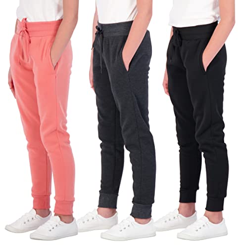 3 Pack:Girls Fleece Joggers Soft Athletic Track Warmup Casual Sweatpants Clothes Little Sports Pajama Kids Clothing Youth Children Sweats Big Teen Running Elastic Pants Basketball-Set 6, S (8)