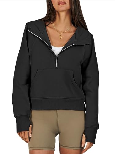 ANRABESS Womens Hoodies Oversized Sweatshirts Half Zip Pullover Cropped Fleece Quarter Zip Up Winter Clothes 2023 Fall Outfits Sweaters Teen Girls Fashion A1117heise-S Black