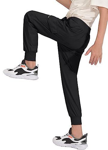 BALEAF Boy’s Hiking Pants Quick Dry Youth Cargo Joggers Lightweight Elastic Waist Pants Casual Athletic Running Outdoor Black S