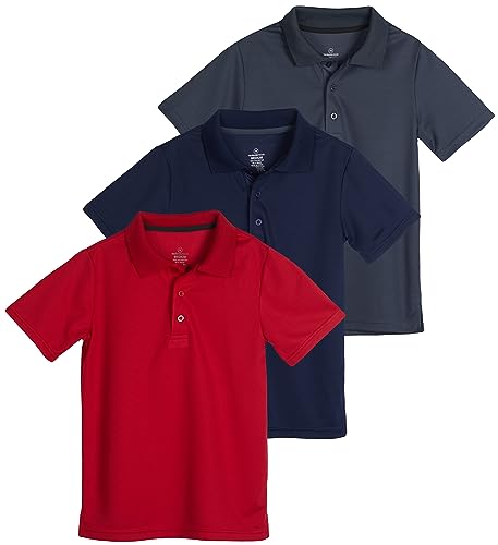 3 Pack: Boy’s Active Athletic Polo Shirt Teen Boys Dri Fit Boy Shirts Polos Button Uniform Kids Tee Short Sleeve Golf Tennis Clothing Black Performance School Dress Casual Tops – Set 4, S (6/7)