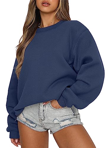 ANRABESS Oversized Sweatshirts for Women Teen Girls Pullover Casual Loose Fit Fleece Crop Hooded Sweaters Fall Winter Fashion y2k Clothes A1026-dianlan-S Dusty Blue