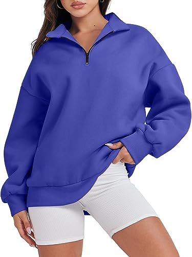 ANRABESS Womens Oversized Half Zip Up Hoodies Pullover Long Sleeve Sweatshirts Quarter Zip Sweaters Comfy Trendy Fleece Outfits Teen Girls Fall Y2K Clothes Tops 1018baolan-S Royal Blue