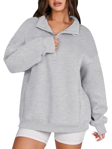 ANRABESS Oversized Half Zip Sweatshirts Casual Quarter Zip Hoodies Fleece Pullover Teen Girls Loose Fit Fall Outfits 2023 Trendy Fall Winter Y2K Preppy Tops Clothes A1315qianhuahui-S Grey
