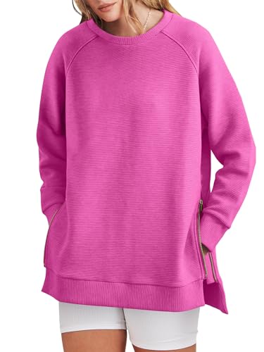 ANRABESS Sweatshirts For Women Crew Neck Oversized Pullover Tops Side Slit Shirt For Leggings Teen Girls Trendy 2023 A1073-meihong-S Hot Pink