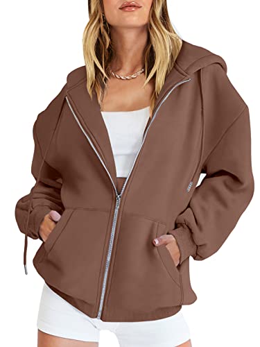 ANRABESS Women’s Oversized Zip Up Hoodies Sweatshirts Y2K Clothes Teen Girl Fall Casual Drawstring Fleece Jackets with Pockets A989qianka-M Deep Brown