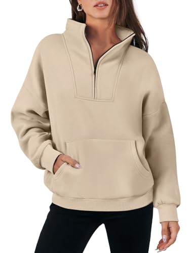 Caracilia Women’s Sweatshirts Long Sleeve Oversized Fleece Half Zip Crop Hoodies Teen Girls Y2K Fall Pullover A1024zongse-S Khaki