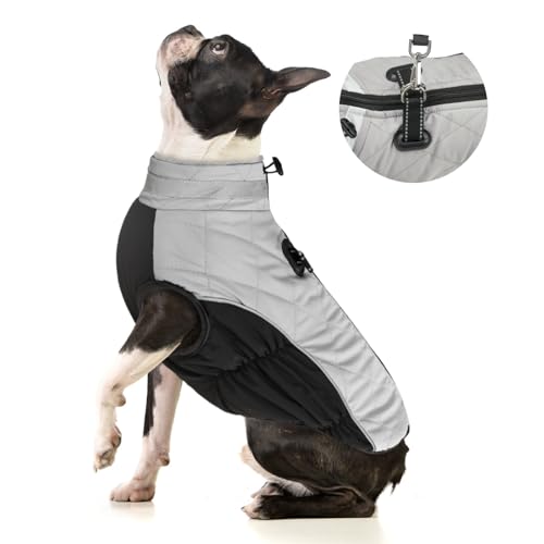 WOYYHO Dog Coat Winter Dog Jacket Warm Dog Coats Padded Built-in Harness Windproof Turtleneck Dog Fleece Vest Jacket Reflective Pet Cold Weather Jacket Clothes for Small Medium Large Dogs Grey, S