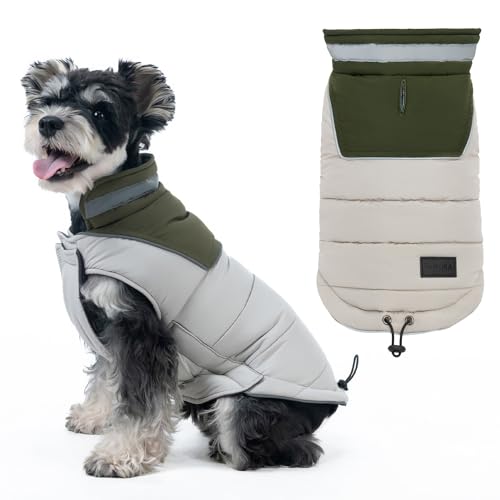 PINA Dog Coats for Small Dogs, Waterproof Dog Jacket, Dog Winter Coat Jacket, Warm Dog Cold Weather Coats, Windproof Reflective Dog Vest for Winter, Cotton Padded Coat for Small Dogs – Army Green