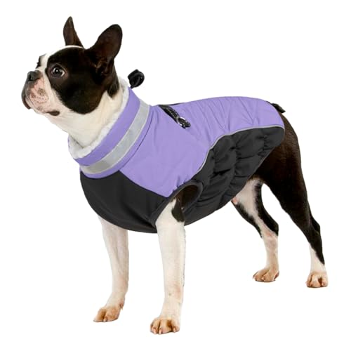 YUDODO Dog Coat Warm Dog Winter Jacket Reflective Dog Cold Weather Coat with Harness Built-in Turtleneck Dog Fleece Vest Windproof Waterproof Dog Jacket Clothes for Small Medium Large Dogs(Purple S