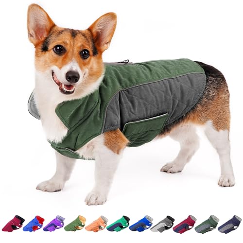 ORZECHKO Dog Winter Coat – Windproof Fleece Warm Thick Dog Jacket Clothes for Snow Rainy Cold Weather – Green Dog Vest Coat Outfits for Small Medium Large Dogs – Indoor & Outdoor Use (S-XXL)