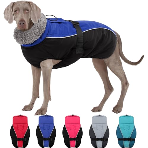SUNFURA Warm Dog Coat Dog Jacket, Reflective Dog Winter Coats with Adjustable Buckle, Turtleneck Padded Dog Fleece Vest Windproof Waterproof Dog Snow Jacket for Small Medium Large Dogs, Blue XL