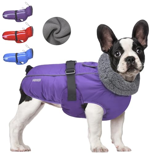 WOYYHO Dog Winter Coat Reflective Warm Waterproof Dog Clothes with Built-in Harness Windproof Pet Dog Jackets for Small Medium Large Dogs (Purple, Small)
