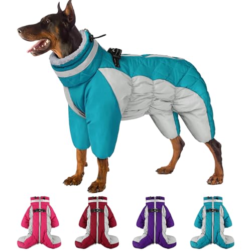 SUNFURA Four Legged Dog Coat Warm Fleece Dog Jacket, Reflective Turtleneck Dog Winter Coats with Harness, Windproof Waterproof Full Body Puffer Dog Snowsuit Snow Jackets for Small Medium Large Dogs