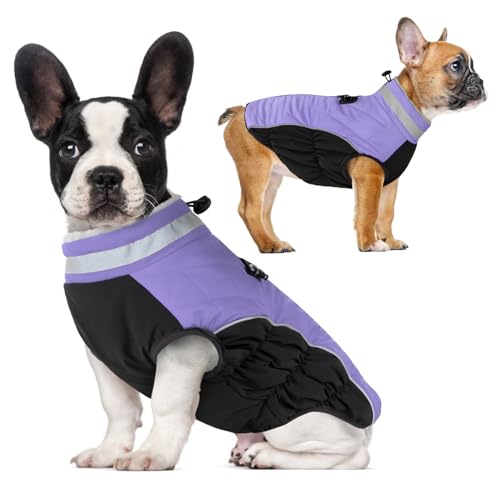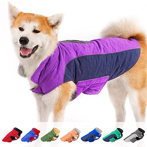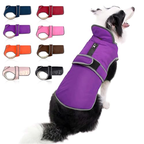ThinkPet Dog Cold Weather Coats – Cozy Waterproof Windproof Reversible Winter Dog Jacket, Thick Padded Warm Coat Reflective Vest Clothes for Puppy Small Medium Large Dogs Purple