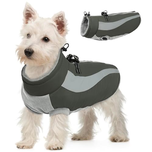ThinkPet Dog Cold Weather Coats – Cozy Waterproof Windproof Reversible Winter Dog Jacket, Thick Padded Warm Coat Reflective Vest Clothes for Puppy Small Medium Large Dogs Green Dark Grey XS