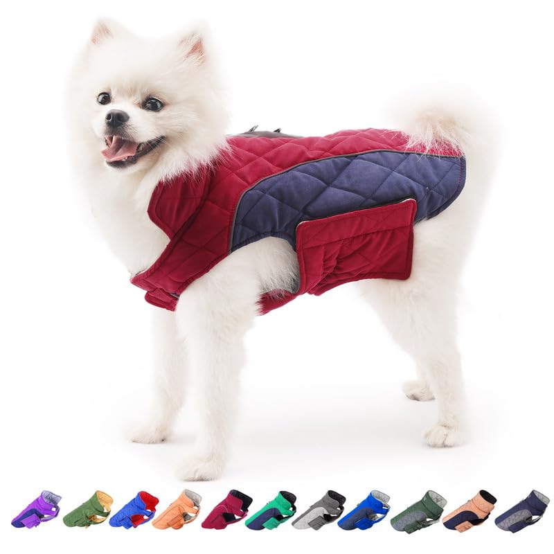 V.PET.B.R Dog Winter Coat,Warm Dog Jacket Fleece Dog Vest with Built in Harness,Waterproof Windproof Reflective Cozy Adjustable Snow Pet Coat Clothes with Zipper for Small Medium Dogs