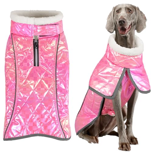 Malier Dog Winter Coat, Reversible Fleece Dog Cold Weather Coats Dog Jacket for Dogs, Windproof Warm Dog Coat Snow Dog Jacket Vest Pet Dog Clothes for Small Medium Large Dogs (X-Large, Pink)
