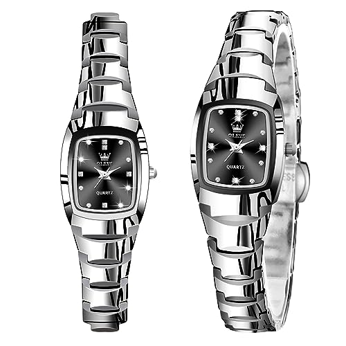 OLEVS Silver Women Watch Square Small Ladies Wrist Watches Dress Bracelet Womens Watches Stainless Steel Water Resistant Watches for Women Diamond Crystal Watch Analog Quartz Black Watches