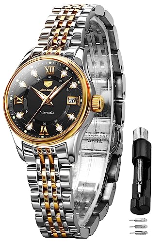OLEVS Womens Automatic Watch Diamond Fashion Luxury Dress Mechanical Self Winding Stainless Steel Ladies Wrist Watches for Women Luminous Waterproof