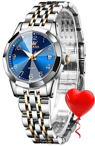 OLEVS Watch for Men Diamond Business Dress Analog Quartz Stainless Steel Waterproof Luminous Date Two Tone Luxury Casual Wrist Watch Blue