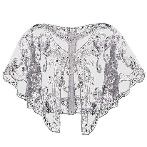 SWEETV Women’s 1920s Shawl Wraps,Sequin Beaded Flapper Evening Shawls for women Formal/Party/Wedding/Formal/Harlem night,Flapper Accessories for Women,Grey