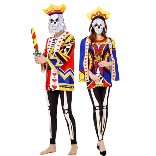 BAYLAY Halloween Couple Costumes for Adults – King XL Size Costume Adults Couple Halloween Costumes with Skull Mask Couple Costumes for Adults