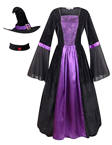 Colorful House Women Wicked Witch Costume, Purple Long Sorceress Classic Dress (Medium, Purple/Black 2)