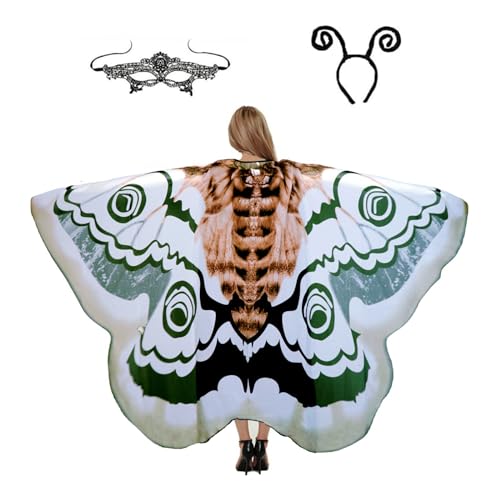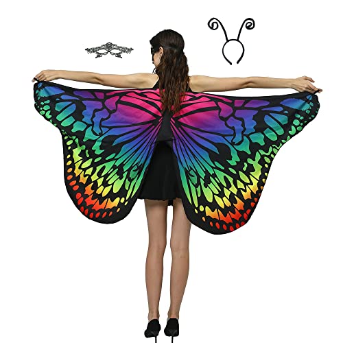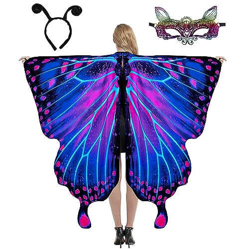 Butterfly Costume for Women, Adult Butterfly Wings Halloween Costumes for Women, Womens Butterfly Cape Shawl Halloween Party Costume for Women Ladies, with Lace Mask and Antenna Headband, 003