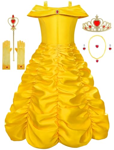 knemmy Princess Costume Dresses for Girls Costumes Halloween Beauty and Beast Cosplay Birthday Outfit Yellow