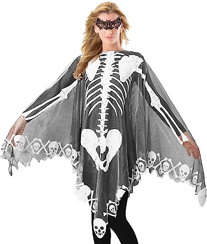 Kinhowly Women’s Halloween Costumes, Halloween Skeleton Cape Poncho for Women Gifts,Includes Halloween Masquerade Mask (Black)