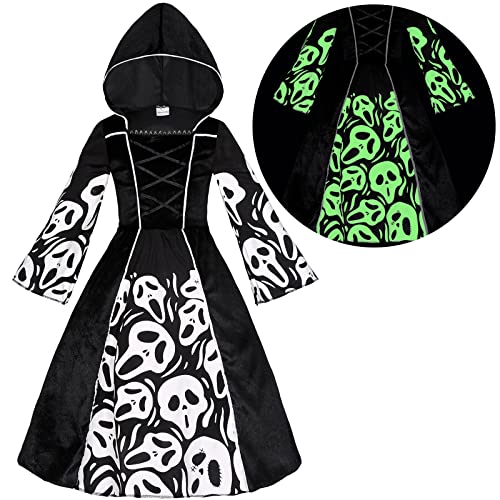 Sersllta Ghost Witch Costume for Girls, Skeleton Glow in The Dark, Halloween Costume