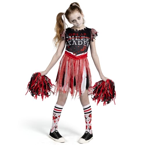 Spooktacular Creations Cheerleader Costume for Girls, Scary Bloody Cheerleader Costume, Zombie Fearleader Costume for Halloween Dress Up Parties-M