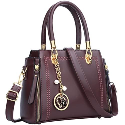 KKXIU Elegant Women Satchel Purses and Handbags Vegan Leather Top Handle Shoulder Crossbody Bag (A-Wine)