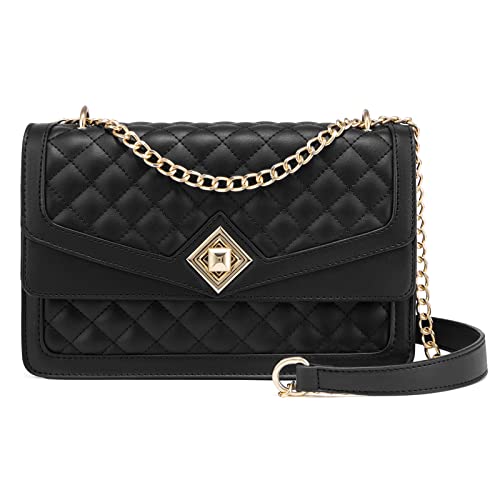 LOVEVOOK Black Purse for Women Leather Crossbody Bags Shoulder Purses with Chain Strap Ladies Classic Satchel Handbag