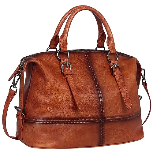Kattee Vintage Genuine Leather Tote Shoulder Bag for Women Satchel Handbag with Top Handles (Brown)