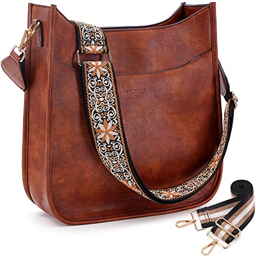 Hobo Handbags for Women Purse Ladies Boho Shoulder Bag Crossbody Bags Brown Vegan Leather