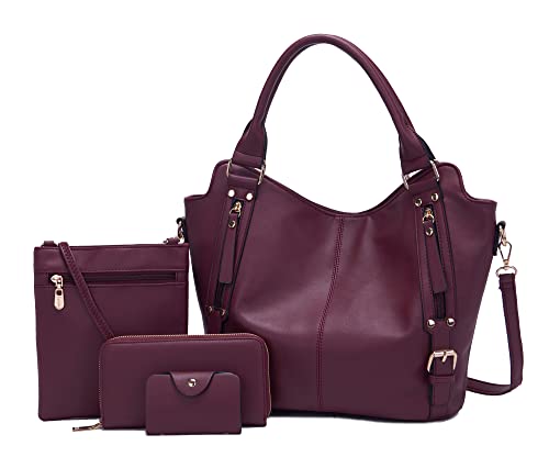 Soperwillton Purses for Women Large Shoulder Handbag Tote PU Leather Hobo Crossbody Bag Ladies Wallet Set 4pcs