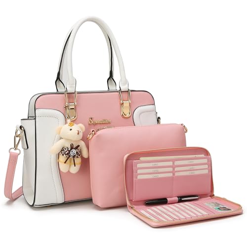 Soperwillton Women Handbags Purses Wallet Tote Bag Shoulder Bags Top Handle Satchel Purse Work Bag Set 3pcs